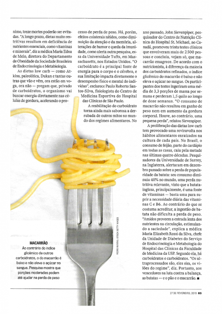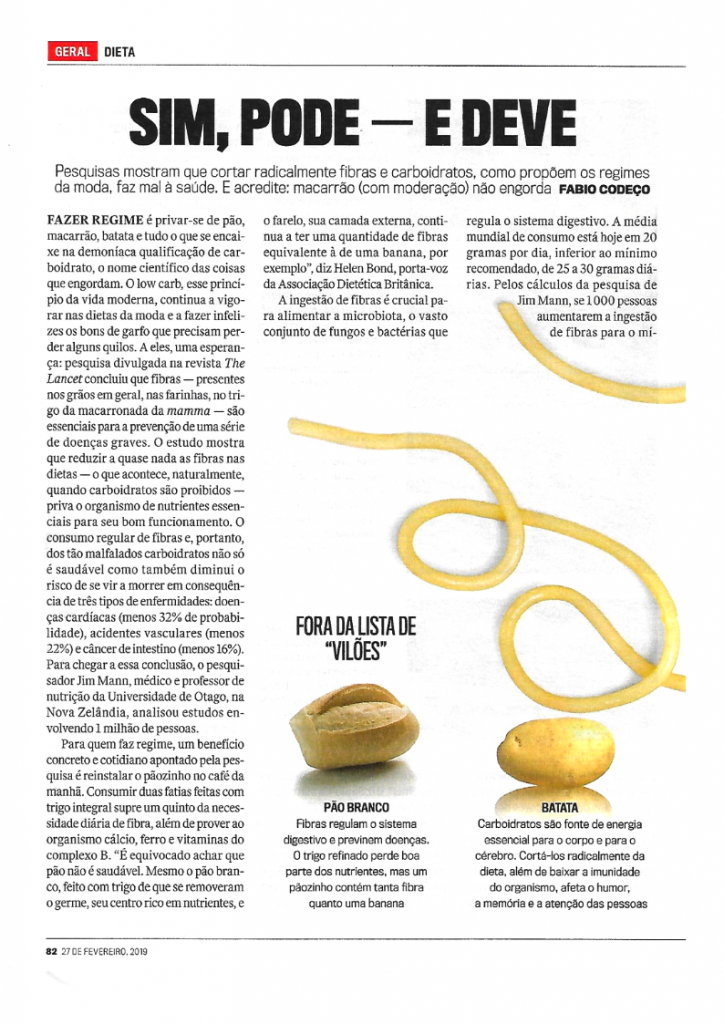 “Pesquisas apontam que cortar radicalmente fibras e carboidratos, como propõem os regimes da moda, faz mal à saúde (…)