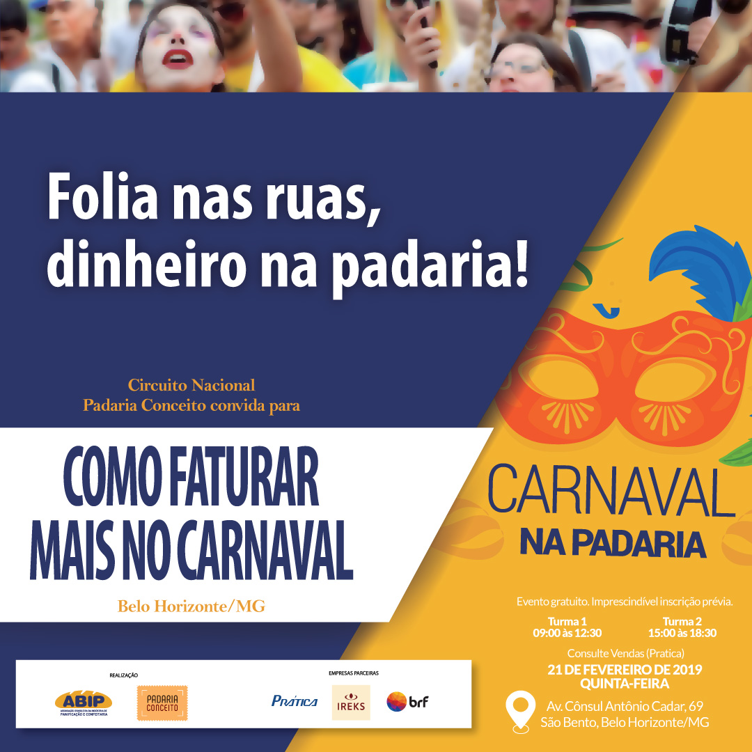 Sua padaria não pode ficar fora dessa grande oportunidade de mercado! E é com o objetivo de mostrar e capacitar você e sua equipe sobre como usar do Carnaval para fatura mais que o convidamos para o Seminário Circuito Padaria Conceito em Belo Horizonte/MG.